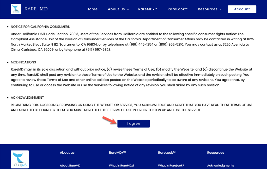 e) When you are in agreement with the Terms of Use please click ‘I Agree’.